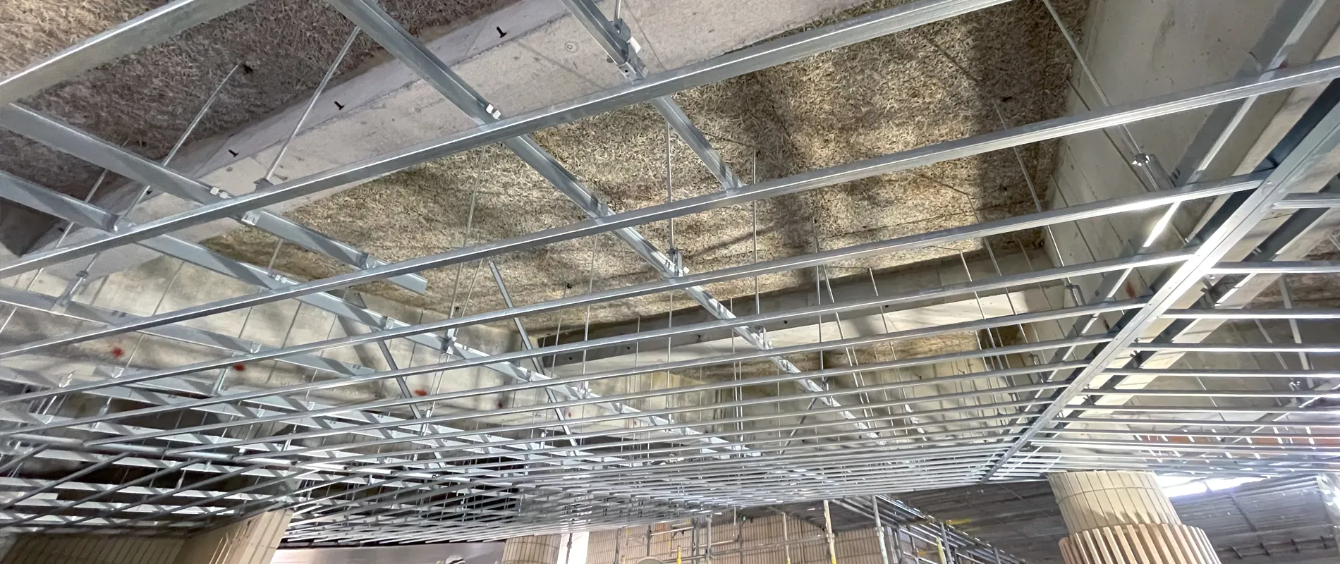 軽量鉄骨を使用して天井や壁の下地を組む工事です。